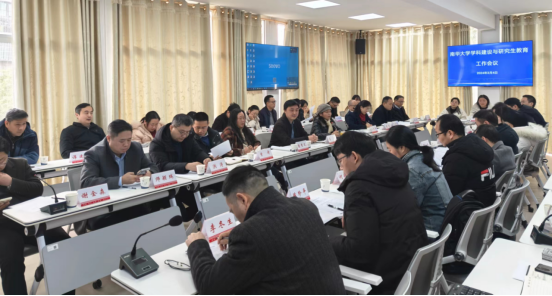 为部署落实2024年学科建设与研究生教育工作重点任务,奋力谱写“双一流”建设和研究生教育高质量发展新篇章,3月4日上午,研究生院李乐院长在第二办公楼400会议室主持召开春季学期第一次学科建设与研究生教育工作例会。各二级学院、直属医院分管学科建设与研究生教育的院领导、分管思政教育与就业的副书记及研究生院(部)全体人员参加了会议。