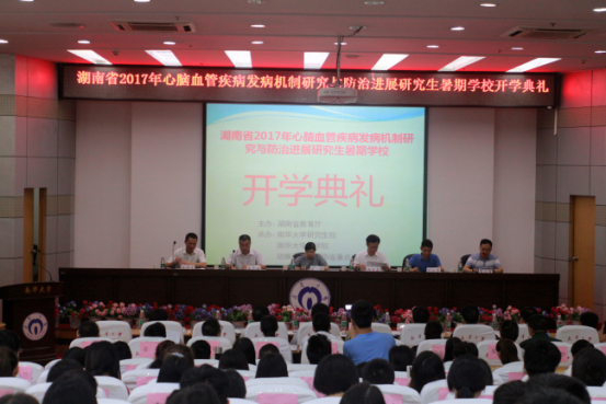 7月9日上午,湖南省2017年心脑血管疾病发病机制研究与防治进展研究生暑期学校在PA视讯平台隆重举行开学典礼。湖南省教育厅副巡视员左清、广州医科大学党委书记冉丕鑫教授、湖南省学位办主任余伟良、湖南省卫计委科教处处长范珍贤,PA视讯平台副校长姜志胜、雷小勇出席典礼。研究生院、医学部以及医学院、临床学院等相关学院领导、老师和暑期学校190余名学员参加了本次开学典礼。典礼由副校长雷小勇主持。