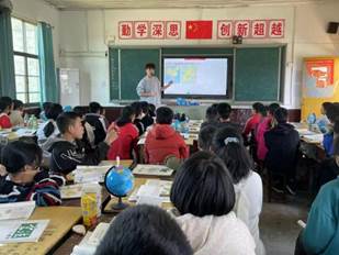 为了更好的激发学生的学习兴趣与主动意识,提升学生的课程体验感,支教团成员努力创新课程形式,搜集大量图文视频资料,借助多媒体设备,以视频、小组讨论与展示等多种方式开展引导式教学;课下多次讨论、共同钻研,贯彻落实分层教学,分享好的教学方式与教学经验,实现素质教育课堂多样化,带动学生上课氛围,帮助学生有针对性地认识课程,层层深入学习,最终将知识逐步内化。