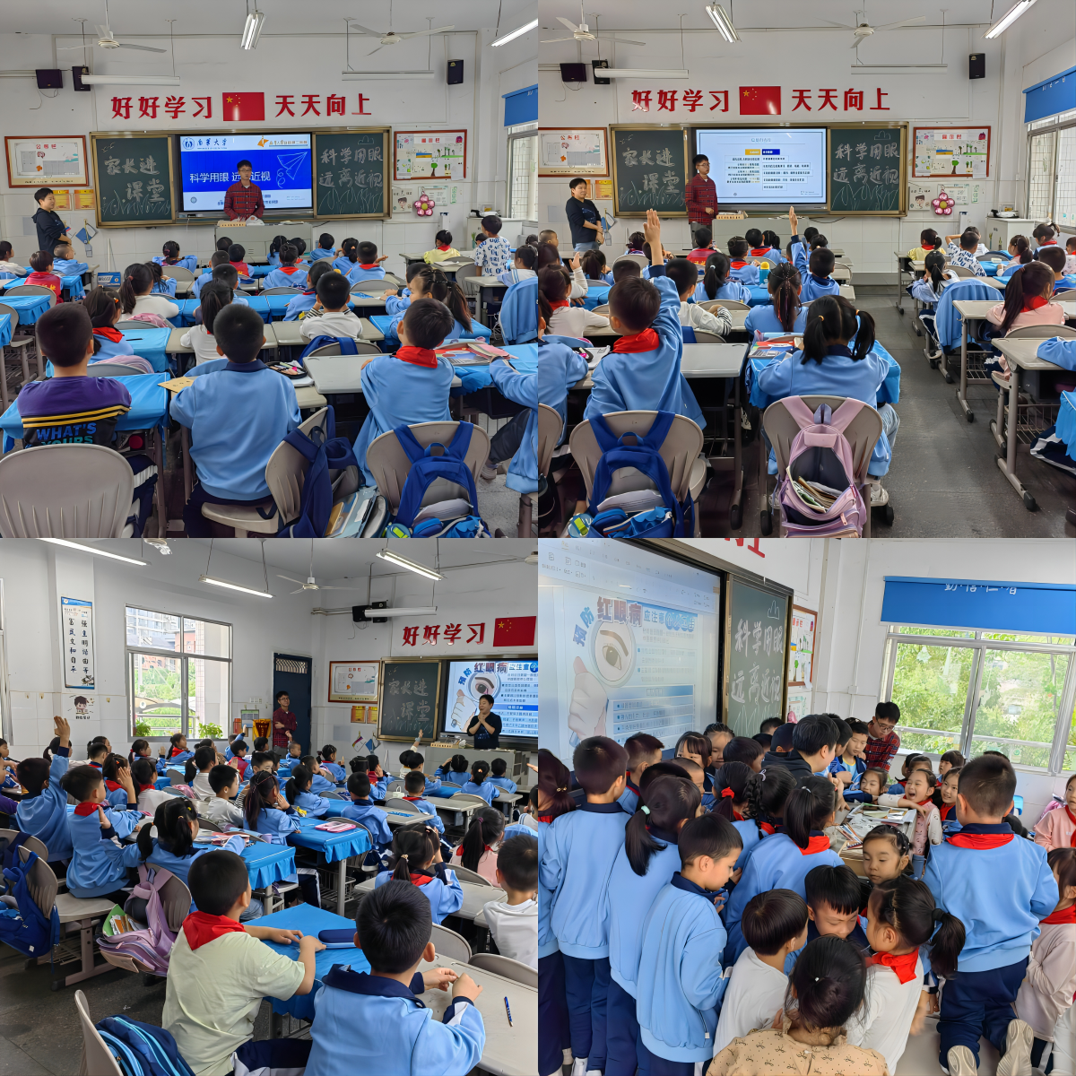 2023年10月13日,南华附二医院眼科硕士研究生走进祝融小学的学生课堂进行了一场以“健康爱眼,远离近视”为主题的眼健康科普活动。活动内容包括近视防控科普宣讲、爱眼护眼知识小抢答、“红眼病”的预防措施科普等等。同学们结合通俗易懂的图片,详细分析了眼睛的重要性及如何珍爱眼睛、保护视力,呼吁学生养成良好的用眼习惯,保护好自己的眼睛。针对高发的红眼病,同学们介绍了“什么是红眼病”、“红眼病的特点”和“红眼病的预防”,嘱咐学生注意眼部卫生、勤洗手。