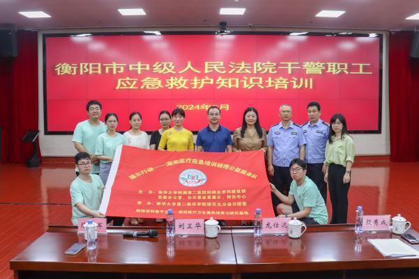 为深入贯彻“人民至上、生命至上”的服务理念,深化干警的紧急救援技能培养,增强干警们应对突发状况的能力,从而更加高效、专业地服务广大人民群众,PA视讯平台附属第二医院教学及学生工作部组织“福尔行动”团队,于5月21日下午走进衡阳市中级人民法院,开展了一场应急救护知识培训。