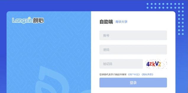 进入页面后输入账号、密码,进行登录。账号为学号,初始密码为:Nanhua123456!。建议登录后对初始密码进行修改。