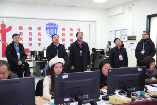 12月19日下午,高山带队深入第二办公楼保密室、应急指挥中心视频监控室、南华楼及核学楼各考场,对2025年全国硕士研究生招生考试考点准备工作情况进行了全面检查,并再次对保密保卫、用心服务学生、全流程演练等工作提出了要求。张灼华专题听取了研究生招生考试工作汇报,要求全校各单位聚焦平安研考的总目标,对标对表上级部署要求,精心组织、齐抓共管,确保研考各项工作任务落实落细,并对考务组织、考试安全、考风考纪、应急处突、服务考生等工作提出了明确要求。