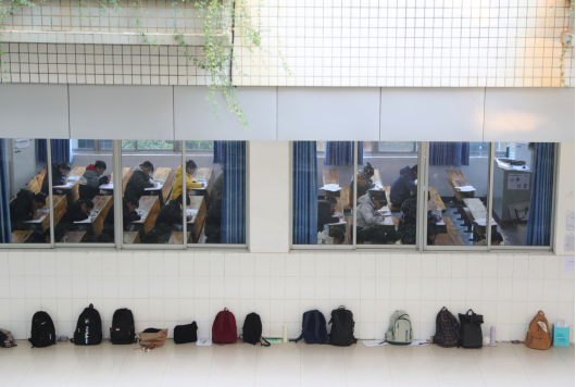 考场实施“双安检”,把好考生入场关。考试前,对考生入场安检等环节进行全流程演练。考生进入考区大楼后,通过智能安检门对考生携带手机等智能通讯设备进行安检,进入考场前,再次由监考老师进行人工复检。为确保每位考生能够诚信应考,开考前,校内广播统一播放《考场规则》,并在楼外树立展板告知考生注意事项和考场纪律。