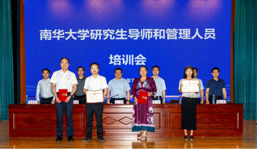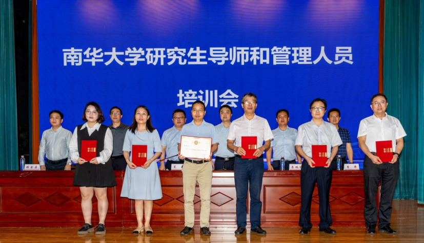 研究生院院长李乐教授宣读了导师遴选和认定文件。党委研究生工作部部长邹海贵教授宣读了湖南省第二届“优秀研究生导师”和“优秀研究生导师团队”评选结果,并为湖南省第二届“优秀研究生导师”和“优秀研究生导师团队”评选中获奖的6位研究生导师、4个优秀研究生导师团队颁奖。