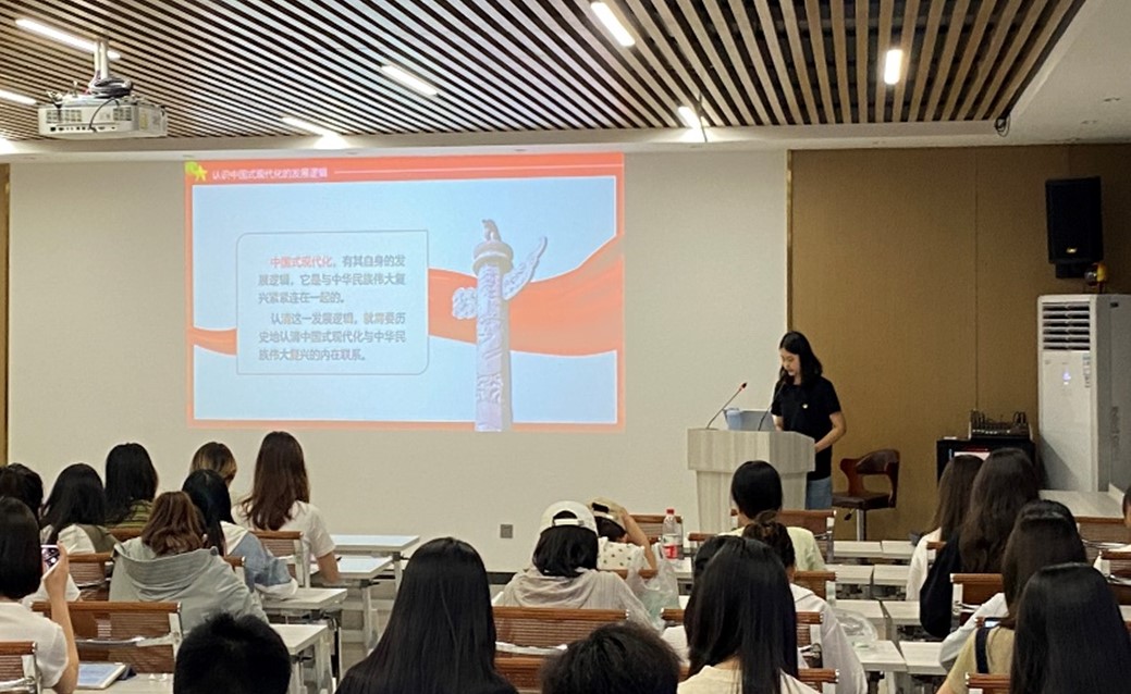 宣讲团成员徐嘉凯同学从“认识中国式现代化的发展逻辑”、“理解中国式现代化的核心要义”、“把握中国式现代化的实践路径”、“激扬青春梦 奋进新征程”四个方面系统全面的介绍了中国式现代化的内涵和新征程上我们应该怎么做。宣讲会加深了同学们对中国式现代化的认识,明确了新征程上,青年的使命任务与责任担当。