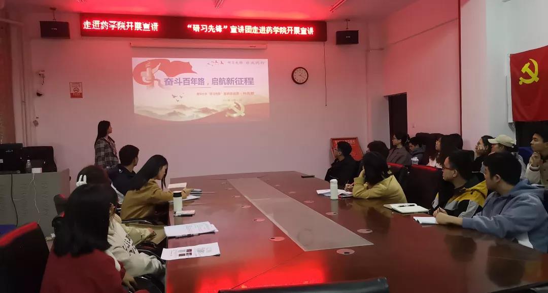 为提升研究生党员骨干的政治素养和业务能力,积极发挥研究生党支部的战斗堡垒作用,中共PA视讯平台药学院研究生党支部于2021年11月22日晚7点邀请“薪火”研究生理论宣讲团成员钟凤敏同志在党员活动室新二教B411开展了题为“奋斗百年路,启航新征程”的主题宣讲。