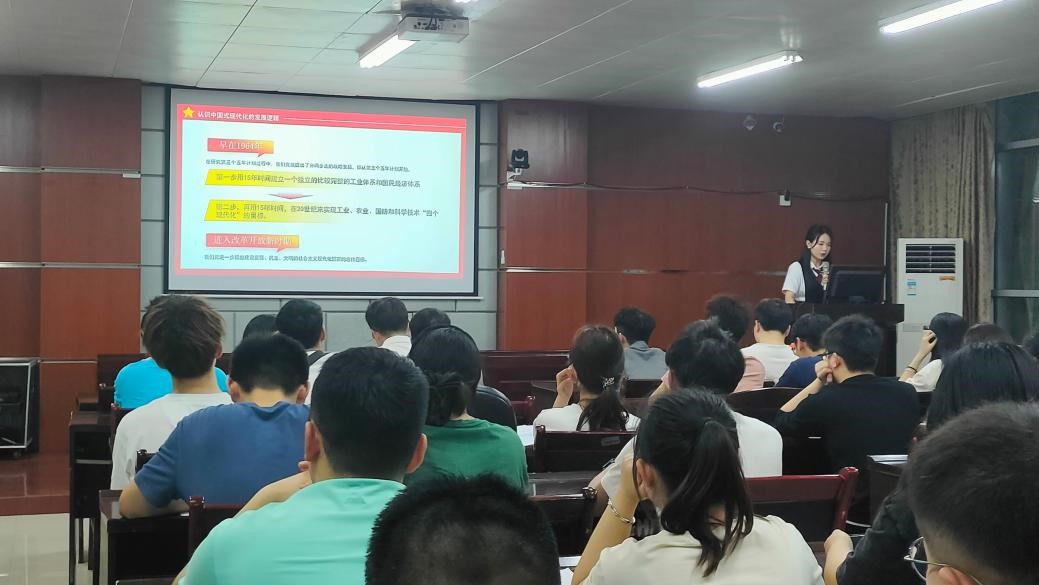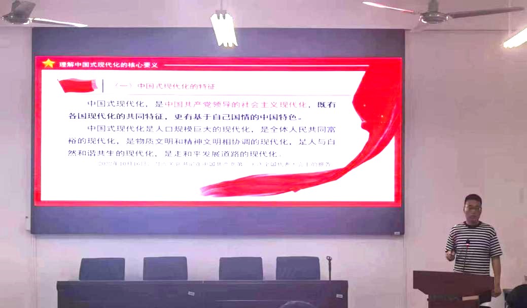 宣讲会上,黄国财同学从认识中国式现代化的发展逻辑、理解中国式现代化的核心要义和把握中国式现代化的前进方向这三个维度带领大家深刻学习了中国式现代化,阐述了中国式现代化必须与党和人民的方向一致,还必须与中华民族伟大复兴的方向同行。宣讲结束,同学们纷纷表示对中国式现代化有了更深刻的理解,也明白了自己肩负的伟大使命,立志争做新时代中国青年,吃苦耐劳,敢于担当,勇于奋斗,立大志、明大德、成大才、担大任,在全面建设社会主义现代化国家、实现中华民族伟大复兴的时代洪流中踔厉奋发、笃行不怠、勇毅前行。