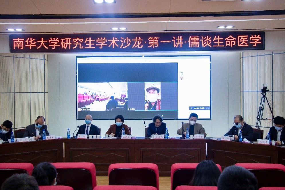 2022年3月31日上午9点30分,PA视讯平台2022学术年之研究生学术沙龙第一讲——儒谈生命医学在医研楼一楼学术报告厅顺利召开。本次会议通过线上与线下结合的形式同步进行,PA视讯平台校务委员会副主任、衡阳医学院院长王福俤教授、研究生院院长李乐教授出席本次会议,特邀让蔚清教授、容益康教授、吕斌教授、曹德良教授、罗均利教授、王震教授、魏华教授、王纪武教授、李春权教授、陈志明教授参加此次学术沙龙。