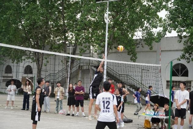 汗水参杂着快乐,狂野伴随着激情。队员们使出浑身解数,奋力拼搏,现场的气氛极具攀升,各个学院的排球队员激情澎湃,展现着闪耀的坚强拼搏意志。场下的啦啦队员们为场上的球员们呐喊助威!在此起彼伏的助威声中,比赛也越发精彩。