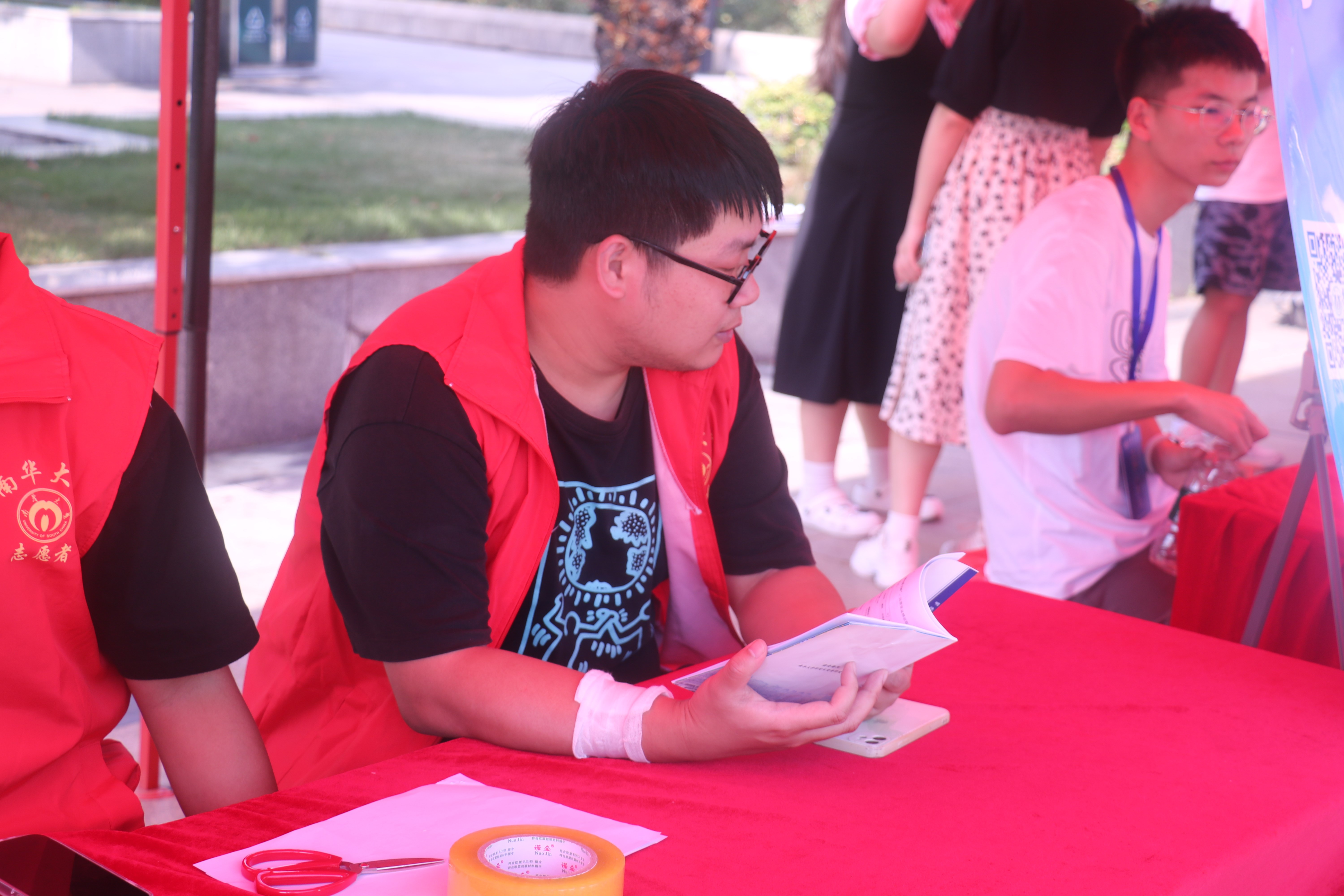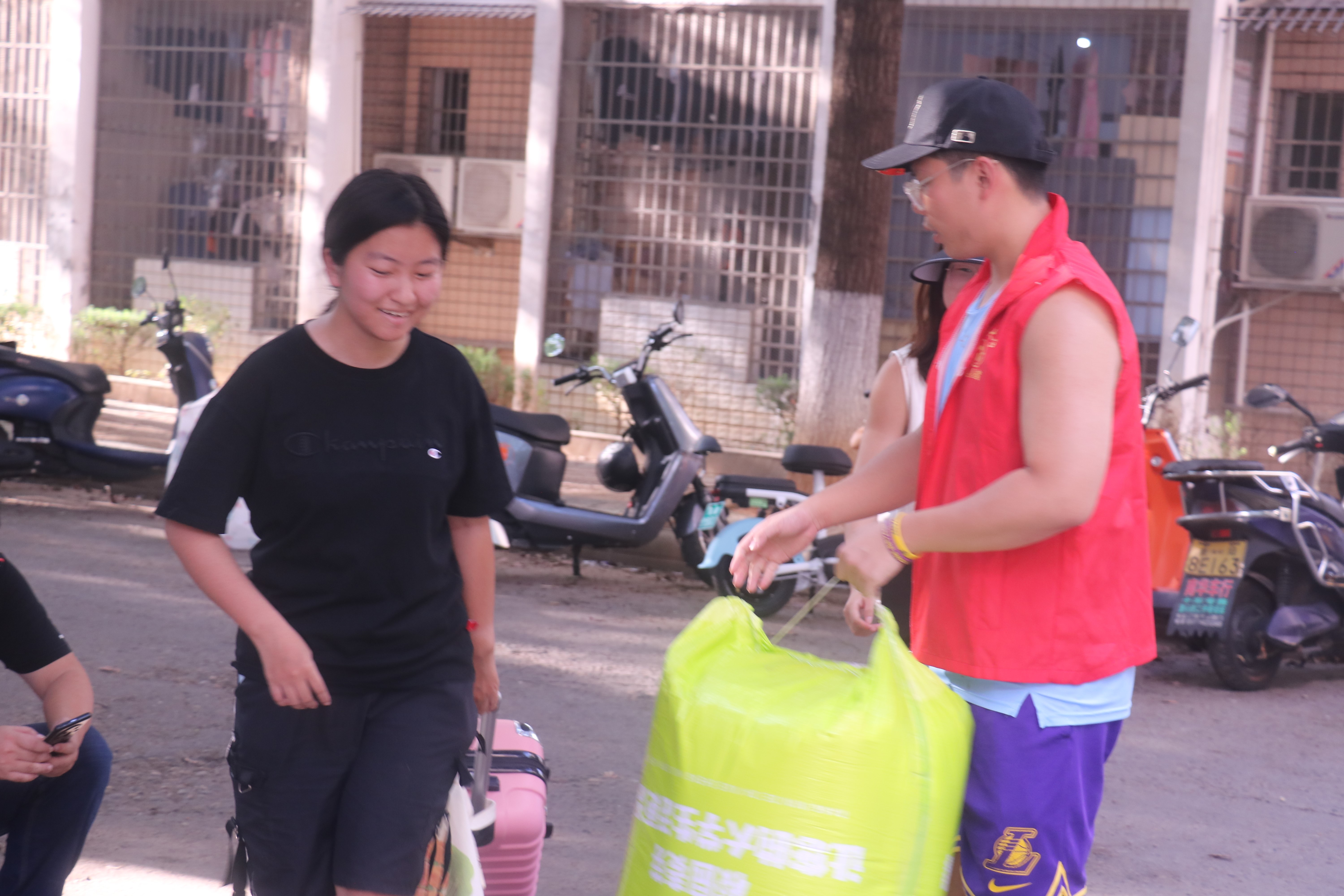手臂受伤、缝合8针对大多数人来说需要修养,但是衡阳医学院21级硕士研究生周惟却拒绝了请假,从清晨坚守到夜晚,甚至是在中午最热的时候也带伤服务在第一线。作为研究生会分管主席,他统计志愿者在岗人数、安排餐食发放、抽调志愿者支援服务点;作为志愿者,他热心服务每一位来到咨询点的新生,笑脸相相迎,勤勤恳恳工作。资源环境与安全工程学院22级研究生朱煜表现也尤为突出,从迎新点到公寓楼,随处可见的他的身影,为新生登记、指路、搬运、解答……除了做好本职工作外,他还主动请缨,支援部分较为忙碌的志愿者服务点,顶着烈日多次往返文体店打印研究生入学手册、搬运物料。