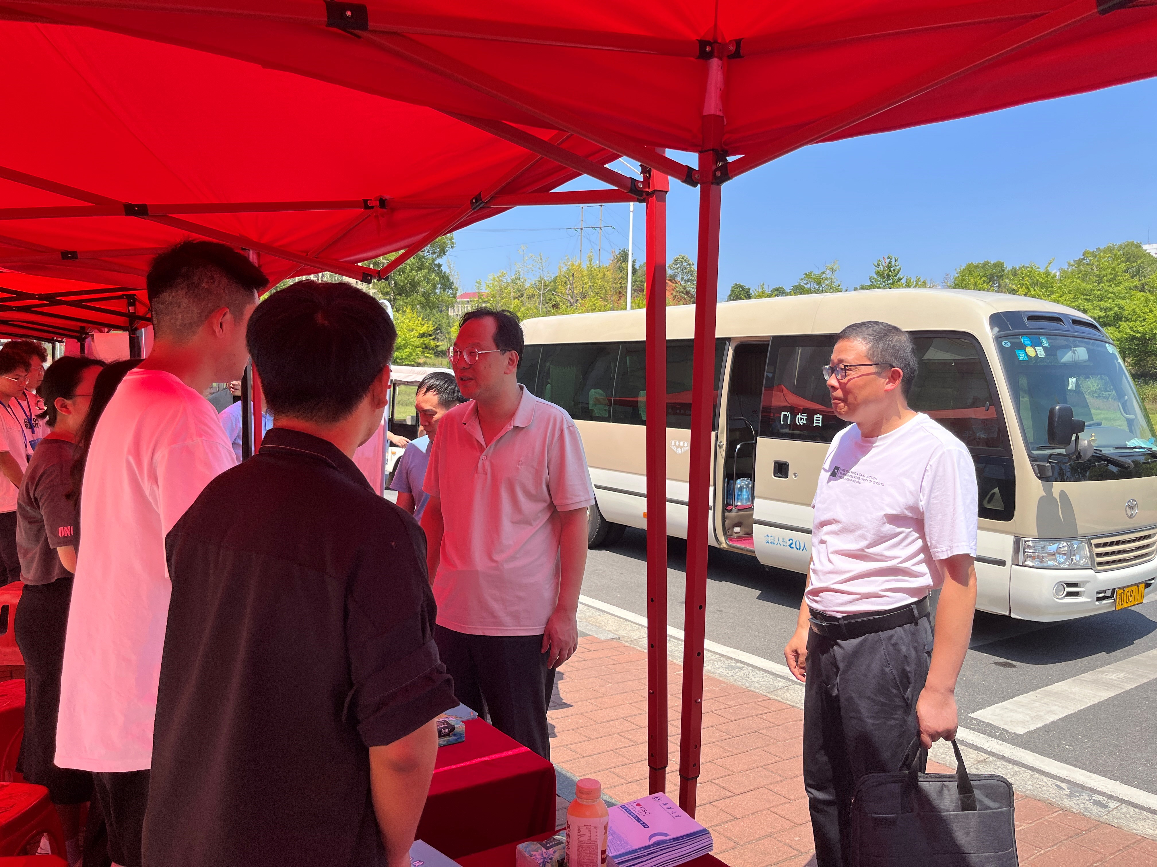10号上午,校党委书记高山,校党委委员、副校长雷小勇,党委研究生工作部邹海贵及老师一行走访雨母校区迎新点,详细了解现场情况,向工作人员致以慰问,对他们的工作态度给予肯定,推动了志愿者工作的进一步发展。研究生院李乐来到红湘校区迎新点,询问迎新工作进展,了解报到情况,并细心询问志愿者在工作中是否遇到困难,鼓励他们在平凡的岗位上创造出不平凡。