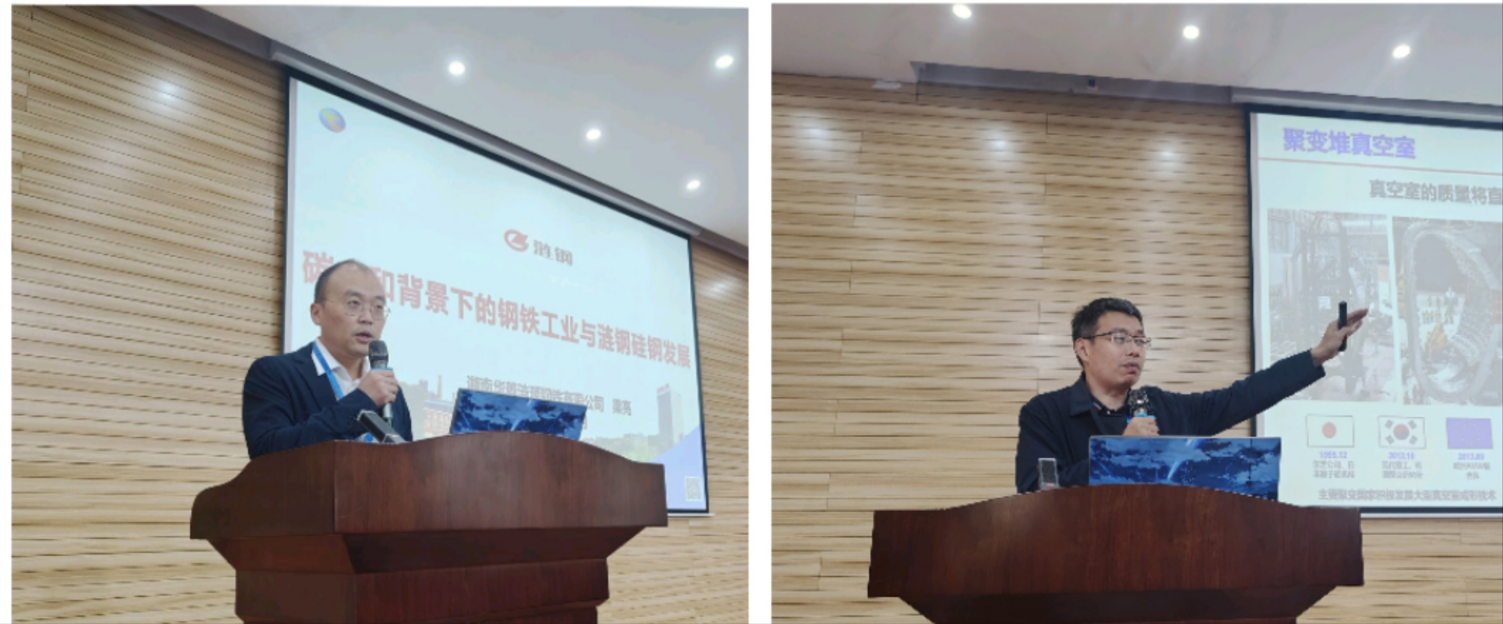 正式会议阶段,与会者聆听了来自湖南华菱涟源钢铁有限公司的教授级高工梁亮和中科院等离子体物理研究所的研究员秦经刚两位专家的精彩报告。两位专家分别就“碳中和背景下的钢铁工业与涟钢硅钢发展”和“磁约束核聚变装置的关键工程技术与进展”进行了深入的讲解,不仅展示了机械工程领域的最新研究成果,也为与会者提供了宝贵的学术启示。