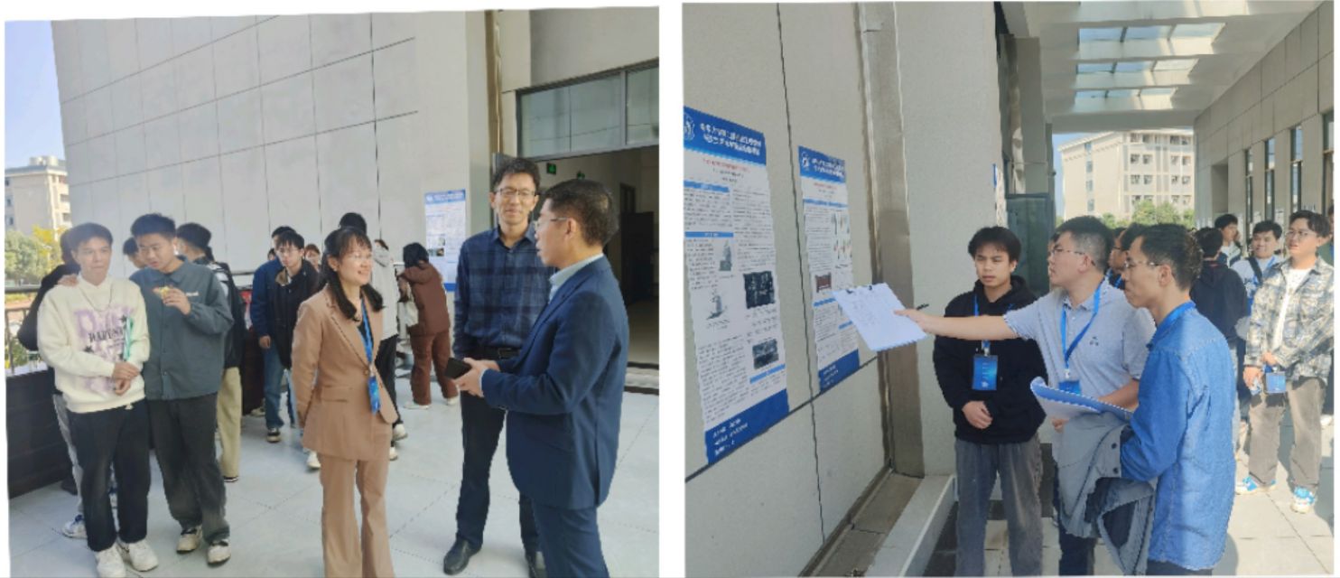 墙报展示环节,几位评委老师对研究生的墙报展示内容进行了细致的评审和打分。评委老师们与参会研究生进行了深入的交流和讨论,不仅对研究生的研究工作给予了肯定,也提出了宝贵的意见和建议,促进了研究生学术能力的提升。