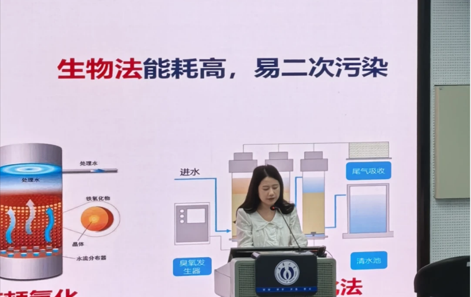 在上午会场的学术会议,首先是来自资源环境与安全工程学院安全科学与工程专业的高贝贝,报告题目是《太阳光驱动废水资源化材料与器件研究》,她详细介绍了利用太阳光驱动实现废水资源化的创新材料和器件设计,为环保事业提供了新的思路。