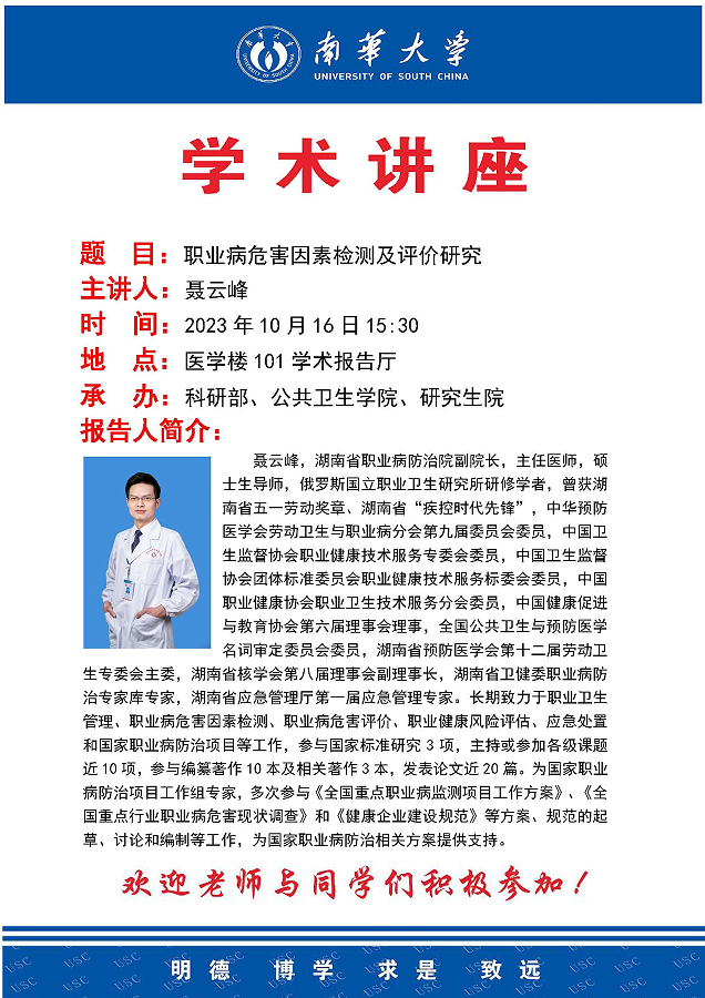 上一条:周华松名誉院长报告会-设计的底层探索 下一条:曾强教授学术报告会—饮用水消毒副产品致男性精液质量降低的中国人群证据
